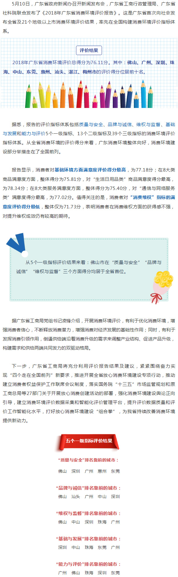 广东首发消费环境评价报告 佛山广州深圳评价得分位居前三