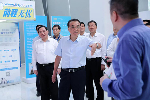 图为9月21日,李克强总理在上海考察前程无忧公司,详细询问就业市场形势、高校毕业生就业等情况。