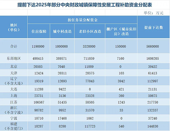 附件:提前下达2025年部分中央财政城镇保障性安居工程补助资金分配表