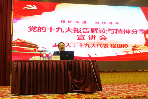 为期3天的培训班邀请了党的十九大代表、全国劳动模范、广东中泰家具实业有限公司工会主席程祖彬作十九大精神宣讲;邀请省委党校朱定祥教授作专题教学,分别对十九大精神、《中国共产党章程》(修正案)等进行解读辅导;邀请省委组织部组织一处处长曾勇进行党务授课,就党组织书记如何做好党务工作进行授课指导。
