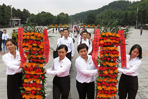 在韶山毛主席铜像广场,怀着对伟大领袖的无限敬仰和深切怀念之情,省家协党支部书记王克同志带领全体党员、员工举行了向毛泽东同志铜像敬献花篮仪式。在党员代表组成的花篮手恭敬引领下,王书记率协会全体人员徐徐前行,将花篮敬献于主席铜像前,大家一起向毛泽东同志铜像深深地行三鞠躬礼,随后缓步绕行铜像一周,瞻仰伟人风范,表达对毛泽东同志的无限敬仰和怀念之情。