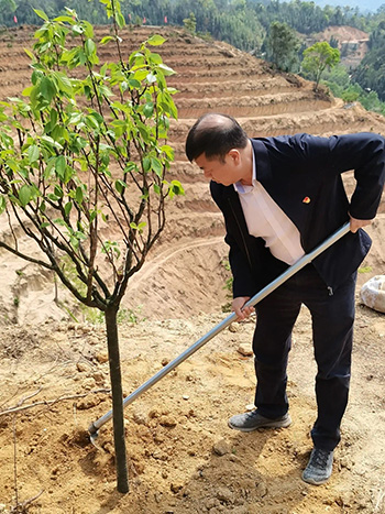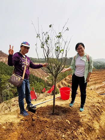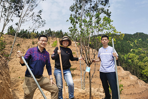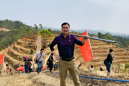 随后,大家前往“广州职工公益林”开展了热火朝天的义务植树活动,以实际行动践行“绿水青山就是金山银山”的生态文明理念。在植树活动开始前,庄侃、周惠明同志为广州社会组织公益红树林进行了揭牌。接着,全体党员手拿铁锹、锄头、水桶,不怕苦累、齐心协力将一棵棵樱花树苗扎根于山上,为美丽乡村增添了一道亮丽的风景线。