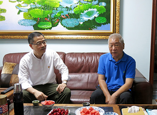 慰问中,大家认真倾听老党员讲述广东家协的初期发展史,在艰苦条件下的奋斗、拼搏的激情燃烧岁月,大家无不被老党员的奉献精神深深打动。王书记向颜老介绍了广东家协成立三十年在党建引领和创新发展中取得的成就,对老领导创办初期领导协会开展工作,对老领导退休后一直关心协会的健康发展表示衷心的感谢。详细询问了颜老及其家属的身体和生活状况,嘱咐他一定要保重身体,保持老党员退休不褪色的本色,继续学习党的十九大报告精神,用习近平新时代中国特色社会主义思想武装头脑,继续发挥余热。 交谈中,颜老衷心感谢党和协会的关心和关怀,并表示现在的幸福生活来之不易,要时刻铭记党恩,时刻保持优良传统,始终保持共产党员本色,始终听党话、跟党走,继续发挥余热、作出自己应有的贡献。