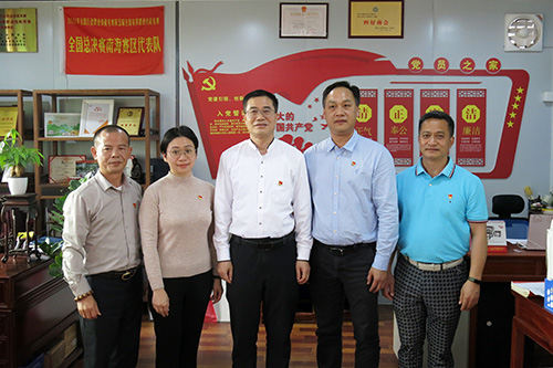 区庆钊书记对王克书记一行的到来表示热烈欢迎,他介绍了南海红木协会党支部情况:该支部成立于2018年9月,主动发挥党的引领作用,组织党员和骨干企业参与公益事业,以点带面,带动企业家自觉履行社会责任。区书记表示,近年来,南海区政府将红木产业列入南海特色传统产业,致力于打造新的南海特色名片,为具有悠久历史文化的红木行业的发展提供了崭新的平台和机遇,充分拓展了新的发展空间。