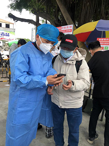 助力疫情防控,广东省家具协会党员在行动。4月8日,来势汹汹的新一轮疫情打破了广州的宁静,本应春暖花开的羊城,一夜间进入全员核酸检测的戒备状态。社区防控是联防联控的末端,也是直面潜在感染者的前端,需要足够的人手加入到疫情防控工作中来。 为深入贯彻落实党中央关于疫情防控工作部署和上级党委工作要求,省家具协会党支部在从紧从严落实疫情防控工作的同时,深化实践“我为群众办实事”的党史教育,积极响应省社会组织党委的号召,协会党支部委员、办公室(党办)副主任、党员吴杰群同志,党员、展览部项目经理曹添财同志等人积极投身志愿服务活动,充分发挥党员的先锋模范作用,主动报名下沉抗疫一线,先后多次支援核酸检测、为筑牢社区防疫安全屏障贡献力量。