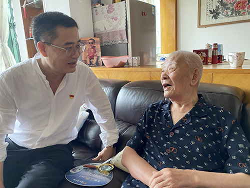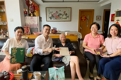 在中国共产党成立101周年到来之际,为加强党内关怀,传递组织温暖,弘扬党的光荣传统和优良作风,充分体现广东家协党支部对老党员的关怀和爱护。6月29日下午,省社会组织党委委员、省人大社会建设委委员、省家具协会党支部书记/会长王克,带领协会党员群众走访探望慰问老党员——我会创会会长刘介元同志,与其促膝谈心,详细询问了家庭生活和身体健康状况,对刘介元老同志为党和革命事业发展、广东家协的建设所作出的贡献表示感谢。同时向老同志赠送协会30周年纪念特刊、虎年生肖纪念币、牛年邮册等纪念品,送上大米、油等慰问品,共同观看协会30周年庆典回顾视频,把党的关怀和组织的温暖送到他们的手中。