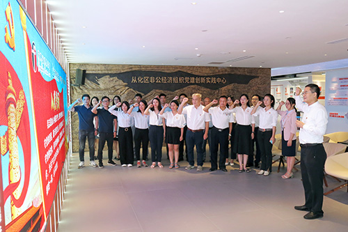 随后,参观由从化区委两新工委、区非公经济组织党委牵头,会同百利文仪党支部联合打造的从化区非公经济组织党建创新实践中心。在近1000平方米的展厅中,以“红领讲堂”“红色岁月”“党建引领”“如愿行动连锁店”“人才驿站”“红色书吧”等主题区,展示了从化民营经济在党的全面领导下逐步发展壮大的历史画卷,激励着广大非公企业坚定信心、砥砺前行。在王克书记领誓下,全体党员同志重温了入党誓词,坚定理想信念。