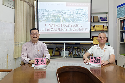 为贯彻落实5月31日省委社会工作部召开的广东省行业协会商会助力“百县千镇万村高质量发展工程”推进会精神,党建引领、聚会凝心,充分发挥行业协会商会扎根行业、贴近企业优势,及时谋划推进广东“千会万企”助力“百千万工程”。6月6日,省社会组织党委委员、省家具协会党支部书记/会长王克同志一行赴南海区九江镇英明社区举行党建结对交流活动。