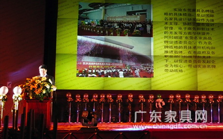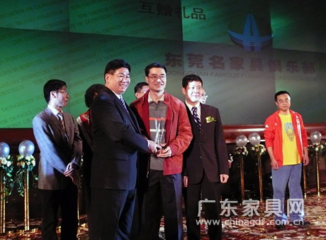 广东省家协常务副会长兼秘书长王克先生向东莞名家具俱乐部理事长尹成枝先生赠送纪念品