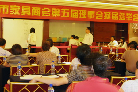 7月29日,中山市家具商会第五届理事会换届选举全体会员代表大会在中山香格里拉酒店隆重召开,当天应到会员96人,实到会员共75人,符合换届选举必须超过2/3的会员到会的法定要求,选举有效。