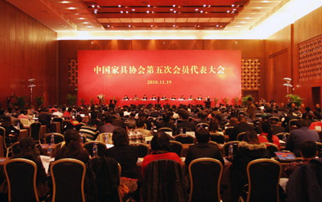 2010年11月19日,中国家具协会第五次会员代表大会在北京国家会议中心隆重召开。民政部、国务院国有资产监督管理委员会、中国轻工业联合会等主管单位领导出席会议并作重要讲话。大会审议并通过了中国家具协会第四届理事会工作报告、会费收支情况报告,通过了新一届理事会章程,选举产生了协会第五届理事会理事长、副理事长、秘书长,朱长岭当选为第五届中国家具协会理事长。经会员代表的一致通过,中国家具协会第五届理事会还聘任陈士能为名誉会长,贾清文为名誉理事长。 这是一次团结的大会,也是一次催人奋进的大会。 中国家具协会第四届理事会理事长贾清文作工作报告,他说:第四届理事会自2004年10月8日选举产生以来,在各级主管部门的正确领导和各会员单位的大力支持下,认真贯彻党中央、国务院的各项方针政策,促进行业健康发展,调结构促转型,推动产业升级,应对金融危机中发挥了重要的作用。与此同时,协会自身建设不断加强,服务能力和水平不断提高。协会在行业中和社会上的知名度进一步提高,成为轻工系统比较活跃的协会。