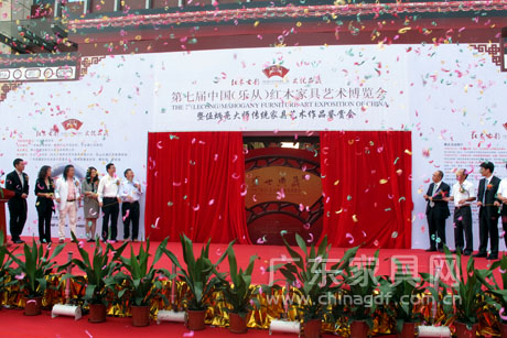 10月21日,由广东省家具协会、顺德区经济促进局、乐从镇人民政府联合主办的“第七届中国(乐从)红木家具艺术博览会暨伍炳亮大师传统家具艺术作品鉴赏会”在佛山顺联家具城·北区盛大开幕。省经济和信息化委员会市场处处长罗房枢,中国家具协会副理事长陈宝光,顺德经济促进局常务副局长岑树德,广东省家具协会会长王克、副会长李礼、秘书长张承志,乐从镇党委副书记谢顺辉,顺联集团总裁陈淑瑶等领导、嘉宾出席了开幕式,展会还吸引了众多红木家具爱好者、收藏家和采购商捧场。