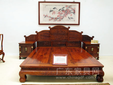 据介绍,明式海南黄花梨透雕螭龙纹八扇围屏高达3.4米,围长4.64米,由极品海南黄花梨精制而成,其出神入化的雕刻技艺,将豪华富贵气象烘托到极致。而海南黄花梨灵芝如意牡丹花纹大床为五屏式,上屏每屏出头采用精雕灵芝如意纹饰,中间花板浮雕牡丹花福寿纹,下座采用外翻三弯脚,雕刻如意纹饰,通过浮雕不同纹饰,充分反映人们对将来美好生活的意愿。
