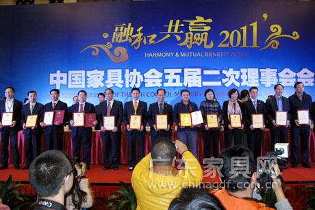 会议审议通过了《中国家具协会第五届理事会关于增补中国家具协会理事、常务理事、副理事长、特约常务理事单位的议案》,对2011年中国家具行业突出贡献企业、优秀企业进行了表彰,并为“中国家具产业教育学院”颁发牌匾。
