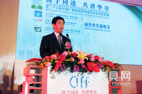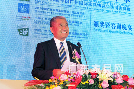 中国对外贸易中心主任王志平在致辞中说:展望未来,广州家具展发展前景广阔。中国对外贸易中心在北京、上海、天津投入百亿现代化展馆和会议中心预期在近年完工,将为广州家具展进一步扩大影响力,辐射全球提供更好硬件环境。主办方将持续提升服务,打造品牌第一阵营。 王志平主任指出:同期举办的第四届广州家居设计展,将"设计、制作、市场"结合,以广州家具展为平台,为富有设计才华、设计创意和设计成果的年轻在校学生、设计师及机构,提供了难能可贵的展示与交流的舞台。经过四年不平凡的发展,广州家居设计展已呈现勃勃生机,为孕育中国家居原创设计营造出良好的发展环境。