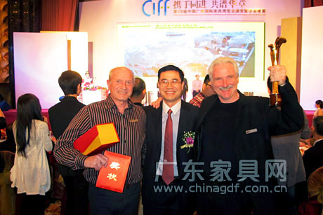 3月20日晚,第29届中国广州国际家具博览会颁奖暨答谢晚宴在广州香格里拉大酒店举行。中国对外贸易中心主任王志平、副主任王彦华,中国家具协会理事长朱长岭、副理事长陈宝光,广东省家具协会会长王克,中国对外贸易广州展览总公司总经理李德颖等领导和嘉宾出席晚宴,家具业界精英同仁相聚一堂,共叙情谊,为家具行业的美好明天祝福和加油。 晚宴现场气氛热烈、盛况空前,广东家具网、广东省家具协会官方微博正在对晚宴进行同步直播,敬请关注并随时刷新。