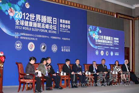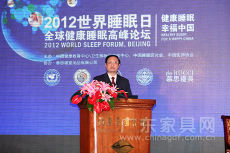 论剑北京,世界睡眠日暨高峰论坛盛大开幕 3月20日,主题为“健康睡眠,幸福中国”的2012世界睡眠日暨健康睡眠高峰论坛在北京钓鱼台国宾馆隆重举行。 据了解,此次会议由中国健康教育中心、卫生部新闻宣传中心、中国睡眠研究会、中国医师协会等共同举办、慕思寝具独家协办,来自卫生部、民政部、中国科协和世界睡眠医学联合会、世界睡眠联盟、澳洲睡眠协会、欧洲睡眠研究会、亚洲睡眠研究会、慕思寝具的相关负责人,共同论剑“健康睡眠”。 卫生部副部长、国家中医药管理局局长王国强致辞并表示,睡眠作为维持我们正常人体机能的重要生理活动,是关系我们每个人心身健康和生活品质的重要民生问题,但关注睡眠和健康,同样需要科技创新和产业支撑,像慕思这类坚持普及健康睡眠的企业为加快我国睡眠产业发展和科技进步做出了不可磨灭的贡献,我们将尽可能地为其持续整合健康睡眠资源,普及健康睡眠文化提供支持和帮助。