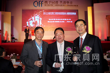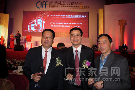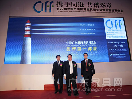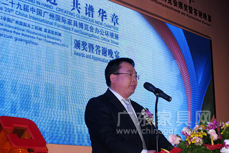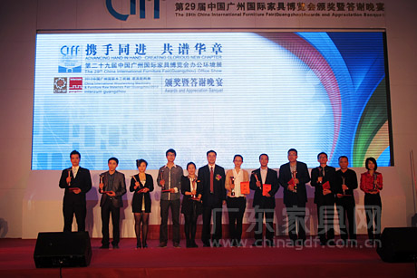 3月29日晚,第29届中国广州国际家具博览会办公环境展颁奖暨答谢晚宴在广州香格里拉大酒店隆重举行。中国对外贸易中心副主任王彦华,中国家具协会理事长朱长岭、副理事长陈宝光,中国对外贸易广州展览总公司总经理李德颖,广东省家具协会会长王克,广东省家具协会执行会长、香港家私装饰厂商总会副主席江学院等领导和嘉宾出席晚宴,家具业界精英同仁相聚一堂,共叙情谊,为家具行业的美好明天祝福和加油。 本届办公展规模再创新高,达到20万平方米,展商超过900家,开展三天来,来自世界各地的5.8万客商云集广州办公环境展,成为名符其实的世界笫一办公家具展。 晚宴现场气氛热烈、盛况空前,广东家具网、广东省家具协会官方微博正在对晚宴进行同步直播,敬请关注并随时刷新。