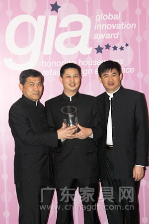 美国时间2012年3月11日晚,美国芝加哥夜幕降临,华灯初上,享誉全球的2011-2012年度的全球家居创新奖(Global Innovation Award,GIA)的颁奖典礼在芝加哥四季酒店举行。在全球23个国家25家家居企业获得本年度的GIA的获奖方阵中,来自中国中山市的红古轩家具公司,作为获得具有“家居奥斯卡”美誉的GIA殊荣的中国企业唯一代表,实现了中国家具业在此项全球家居创新奖的历史上“零”的突破。