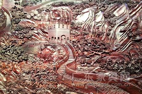 伍炳亮新作紫檀万里长城地座屏亮相文博会 2012-5-18 来源:广东家具网