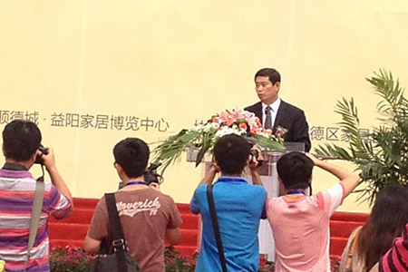湖南省副省长何报翔、中国家具协会理事长朱长岭,顺德城•益阳家居博览中心董事长吴辉藩先后致辞。朱长岭指出,这是顺徳家具行业一个保增长、扩内需,抱团开拓国内巿场的重要挙措。吴耀藩在致辞中表示,该项目立足益阳,辐射长沙、株洲、湘潭、湘西北,两小时车程可以辐射湘、鄂、赣等多个省份,将会是华中南地区规模最大的高端家居专业市场。