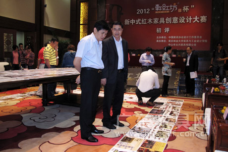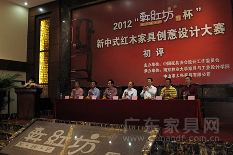 10月30日下午,由中国家具协会设计工作委员会主办,中山市太兴家具有限公司和南京林业大学家具与工业设计学院联合承办的2012轩红坊杯新中式红木家具创意设计大赛初评在中山市太兴家具红木文化馆举行。由中国家具协会副理事长陈宝光、设计工作委员会秘书长吴国栋,广东省家具协会会长王克,南京林业大学家具与工业设计学院吴智慧、张彬渊、陈于书,江南大学设计学院张福昌,顺德职业技术学院设计学院刘晓红,中山市太兴家具有限公司总经理李兴畅等担任评委。大涌镇党委书记黄红金、镇长文卫戈、党委委员谢巧明出席。
