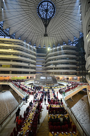 1月28日晚,中国(佛山)国际家居博览城(简称“家博城”)在项目本部二层的中央大街举办了主题为“家居群英会,璀璨迎新年”的全球家居精英新春答谢晚宴。来自国内十大银信机构、各省市家具协会和中国家具协会、广东省家具协会、中国家居品牌联盟等行业组织的领导和代表们,以及入驻商户代表和媒体记者,共4250位宾客济济一堂,交织情谊,共襄盛宴,畅谈未来发展。