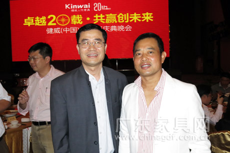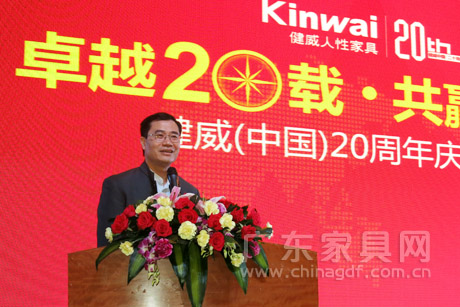 广东省家具协会会长王克代表协会对副会长单位健威公司成立20周年表示祝贺。他希望健威公司以优秀的品质、精心的设计、良好的服务赢得更多客户,为消费者提供更多人性家具,祝愿健威公司在新征程上一路高歌前行。