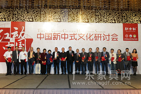 3月23日,2013年“红动中国”新中式文化研讨会在中山市盛大召开。此次研讨会由新中式红木家具领跑者,中山市红古轩家具有限公司发起,得到了家具、建筑、服装、美术、设计等行业及业界人士的热切响应,是“新中式”首次突破家具、建筑、服装、美术、设计等艺术领域界限,呼吁与促进全社会共同关注和推动中国艺术与设计的一次盛会,对传播新中式文化精神,提升国人生活品质和品位,传播中国新时代形象,重振中华优秀文化风貌具有里程碑意义。 亚洲家具联合会会长、北京林业大学教授林作新,广东省家具协会会长王克,中山大涌镇委书记黄红全,中国家具学学科创始人之一、中南林业科技大学教授胡景初,中央美术学院设计学院副院长金日龙,澳珀家具董事长兼首席设计师朱小杰,中国服装设计师协会常务理事、中央美术学院设计学院时装设计学科带头人吕越,顺德职业技术学院艺术设计学院教授刘晓红,著名建筑与都市规划师洪达仁等20多位行业领导、专家学者,共同见证了中国新中式文化研究院的盛大揭启。中山市政府副市长吴月霞,中山市红古轩家具有限公司总经理吴赤宇、营销总监杨晶出席了活动。