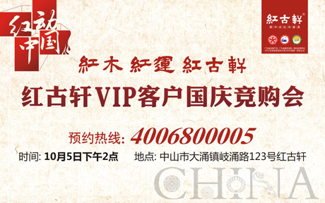 现场顾客热情高涨,意犹未尽,难以平息。应广大用户的一致要求,红古轩现场追加5款精美拍品,并给出前所未有的“白菜价”回馈给顾客,让现场竞购朋友大呼过瘾。 这是一场红木家具的饕餮盛宴,是红古轩用户相互沟通交流的平台,是红古轩回馈广大用户的一项重要内容和创新之举。活动的圆满落幕,昭示着红古轩将以更强大的产品阵容、更卓越的品牌实力延续红木家具的辉煌,也将有越来越多的用户享受到红古轩尊崇优雅的红木文化魅力。 红木,吸日月之精华,收山水之灵气,形成了重、硬、细、少的名贵特性。红木家具,作为非物质文化遗产的一部分,是我国上百年甚至上千年文化艺术的精髓体现,是当之无愧的国粹至宝,是最健康的生活方式,已成为名副其实的奢侈品和文化艺术品。 今年3月以来,中央电视台、新华网、凤凰网、中新网等,关于红木家具的稀缺与濒危的信息铺天盖地,越来越多日益濒危的树种让红木收藏价值愈显珍贵。 据悉,多年来,红古轩以加强客户体验为核心,不断推出创新的服务举措,并得到了广大用户的热烈响应和积极参与。在即将到来的10月5日,红古轩将启动国庆竞购会,数十件稀缺臻品1折起拍,让消费者体验到红木家具的文化感动与品质震撼。