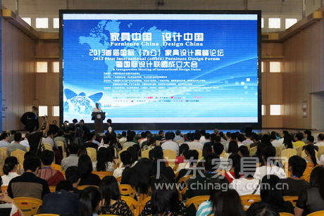 10月15日,由广东省家具协会、中山职业技术学院、中山市领艺企业策划有限公司联合主办的“家具中国 设计中国”2013首届国际(办公)家具设计高峰论坛暨国际设计联盟成立大会在中山市举行。 中国家具协会理事长朱长岭、中山市副市长冯煜荣、广东省经济和信息化委员会消费品工业处副处长区毅勇、广东省家具协会秘书长张承志、中山职业技术学院院长吴建新、国际设计联盟主席Nina Alexandra Gunnell、中山市领艺企业策划有限公司总经理何明等出席开幕式。国际设计联盟成员、国外优秀设计师、国内设计公司代表、办公家具企业代表、家具设计专业院校师生聚集一堂,共议“家具中国•设计中国”话题。