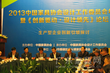 11月28日,2013中国家具协会设计工作委员会年会暨《创新驱动•设计领先》论坛在顺德乐从镇举行。中国家具协会理事长朱长岭、乐从镇镇长谢顺辉致辞。中国家具协会副理事长、设计工作委员会主任陈宝光,王克、蒋鸿源、吴智慧等副主任以及委员和设计师、媒体代表出席。