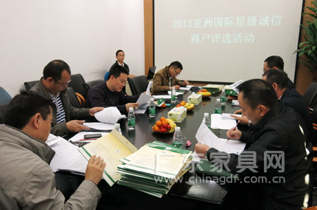 11月29日,在广东省家具协会的指导下,亚洲国际家具材料交易中心举行了2013诚信星级商户评选活动复评会。经审评考核,共有68家商户在100多家参评商户中脱颖而出,顺利进入复评考核。 广东省家具协会会长王克、顺徳家具协会秘书长黎志荣、亚洲国际营运总监张浩然,以及顺徳龙江镇质监局有关领导等参加评定工作。王克会长指出,亚洲国际举行星级诚信商户评定工作坚持几年,成效显著,为我省家具行业巿场诚信自律工作作出积极有益的探索,积累了宝贵经验,值得赞扬。 会后,评委们还到部分商户现场核查,对商户诚信自律工作表示肯定,并提出工作要求和建议。