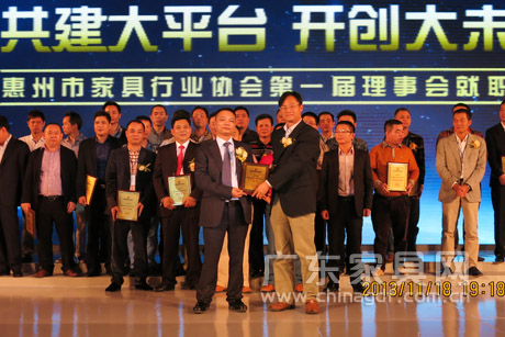 11月18日,惠州市家具行业协会在惠州万丽酒店举行第一届理事会就职典礼。中国家具协会副理事长兼秘书长张冰冰、广东省家具协会会长王克等行业协会领导,以及广东家居行业精英出席活动,共同见证惠州市家具行业协会的成立。 惠州市家具行业协会于2013年7月14日召开第一届第一次会员大会并宣告成立,目前共有会员105名,一届二次会员大会共计93会员参加。大会审议并通过了副秘书长陈炽明先生向大会所做的成立前期工作报告,表决通过了协会章程修订意见。大会投票选举惠州市英格利实业发展有限公司董事长黄开元当选会长。