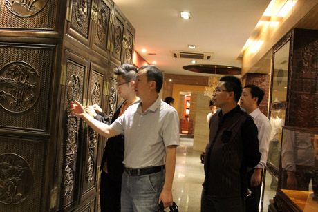 11月4日,新疆克拉玛依市委统战部常务副部长、市工商联党组书记李军莅临中山红古轩考察,在红古轩展开了一场红木文化艺术之旅。中山市工商联副主席吴国森陪同。 考察中,红古轩总经理吴赤宇跟李军书记一行介绍了中山红木家具的历史与发展,并与来宾一行探讨了红木家具对家庭、对生活的意义。在听取吴赤宇总经理的介绍后,李军书记表示对红木家具充满兴趣,并对红古轩的新中式红木家具给予高度的肯定。