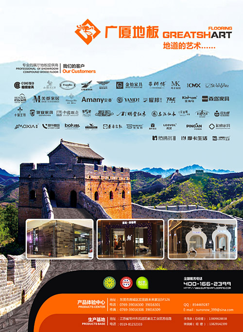 广厦地板是业内领先的综合装饰板材解决方案提供商。公司通过为家具行业诸多著名企业提供创新产品与装饰解决方案。公司成立2001年,在东莞和常州两地分别设立了营销中心和生产基地,是中国最具创意的装饰板材提供商之一。 广厦地板拥有最完美的设计生产配送一体化解决方案,通过不断创新的产品,灵活满足家具行业不同客户的差异化需要以及快速创新的追求。2007年广厦地板实现了规模化的转型,各项业务得到极大的增长。目前,广厦地板已全面服务于泛家具行业的各类客户。为了更好的服务客户,广厦地板加入中国家具协会、广东省家具协会、东莞名家具俱乐部协会。未来广厦地板更加深入的研究市场的需求,协助客户营造更好的商业空间环境。