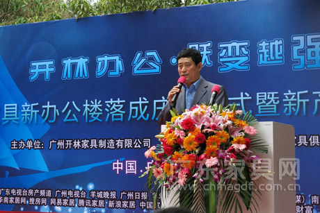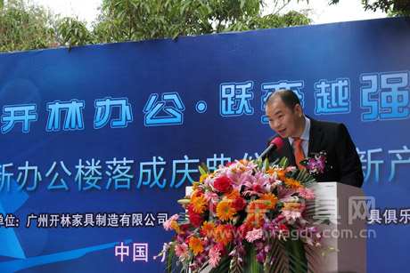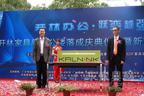 3月27日,广州开林家具制造有限公司新办公楼落成庆典仪式暨新产品发布会在广州白云区开林工业园隆重举行。亚洲家具联合会会长、中国家具协会理事长朱长岭,广东省家具协会会长王克,开林家具董事长宋寿辉、总经理宋寿明,广东优派家私集团董事长李炽华,中国对外贸易广州展览总公司经理周文缨,中国家具协会办公家具委员会秘书长、广州市020F家具俱乐部董事长庄子标,新闻媒体以及来自全国各地的开林家具公司经销商及供应商代表约300人出席了本次活动,共同见证“开林办公·跃变越强”。