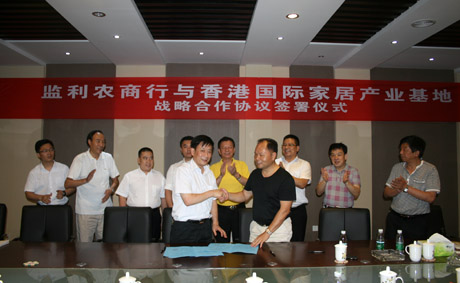 为加快香港国际家居产业基地建设,促进中国家居企业转型升级、结构调整。香港国际家居产业基地与湖北监利农商银行为图谋发展、合作双赢的共同目标于2015年6月29日在香港国际家居产业基地会议厅隆重地举行了战略合作协议签署仪式。 湖北福茂香港国际家居产业园有限公司董事长任作辉、湖北监利农村商业银行股份有限公司董事长姚春明共同签订了战略合作意向书。