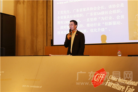 作为中国家博会的主办方之一,广东省家具协会会长王克先生在推介会上致辞,对来自中国和全球家具行业的众多媒体、行业精英表示热烈欢迎。他表示, 1998年3 月,广东省家具协会积极参与创办了 CIFF广州家具展。19年来,在主承办机构的不懈努力和精心培育下,展会取得了举世瞩目的骄人成绩,推动行业贸易、交流与发展的作用十分显著。今年 9月上海虹桥家博会无论是展商和观众品质,还是参展、观展服务体验都将引来全新升级。作为 3月广州家博会和9月上海虹桥家博会的主办方之一,广东省家具协会将不遗余力地坚持推动行业的“创新驱动、技术改造、市场拓展、优化升级”。相信 CIFF家具展品牌将不负众望,把上海虹桥家博会办得更加精彩,不断推动行业转型升级和市场开拓,持续促进中国家具业和谐、稳步发展。