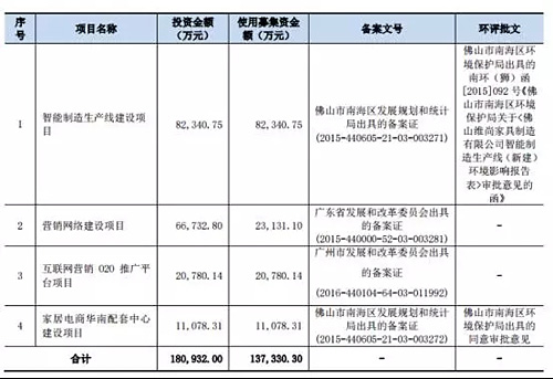 2月13日,广东省家具协会执行会长单位、广州尚品宅配家具股份有限公司公布《首次公开发行A股招股意向书》,拟深圳证券交易所上市。 招股书显示,尚品宅配本次发行前总股本为8100万股,本次拟发行不超过 2,700 万股人民币普通股,发行后总股本不超过 10800 万股,全部为流通股。 《广州尚品宅配家居股份有限公司首次公开发行股票并在创业板上市初步询价及推介公告》明确指出了本次申购的时间:本次网下发行申购日与网上申购日同为 2017 年 2 月 23 日(T 日),其中,网下申购时间为 9:30-15:00,网上申购时间为 9:15-11:30,13:00-15:00。中签结果将于2月24日公告。 根据招股书,尚品宅配拟募集资金13.7亿元,其中,8.2亿元用于智能制造生产线建设项目,2.3亿元用于营销网络建设项目,2.1亿元用于互联网营销O2O推广平台项目,1.1亿元用于家居电商华南配套中心建设项目。