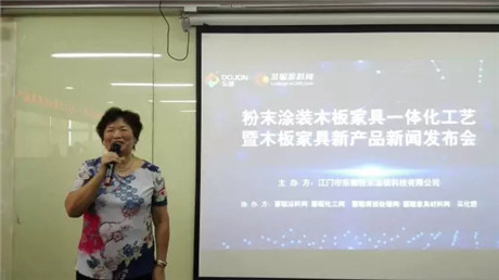 广东省涂料协会荣誉会长黄开肯定了东健科技用木板家具粉末涂料来作涂装一体化的积极尝试,表示这对涂料行业的创新做出了巨大贡献。她说,东健所致力的木板家具一体化确实是个难题,东健公司能勇敢地走在前列,不断创新改革木板家具粉末涂料及其配套的涂装一体化工艺,非常值得肯定。她还表示,通过今天的发布会,了解到了东健产品的诸多优异性能,能够看出在市场上非常有竞争力。希望通过协会、企业、媒体等多方的共同努力,把木板家具粉末涂料这优秀的产品推广得更好、让市场和社会都能更好的受益。