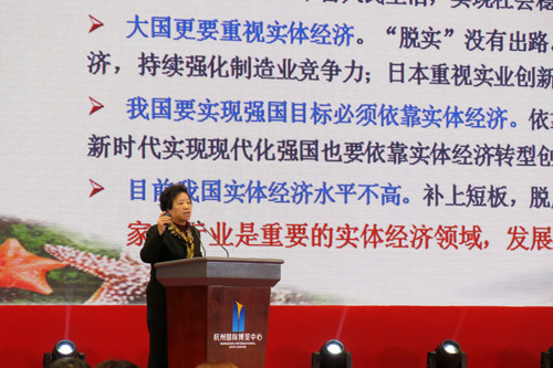 会议邀请了国务院发展研究中心市场经济研究所原所长任兴洲作《学习领会十九大精神,促进家具业高质量发展》主题演讲。她为大家深入解读了十九大精神,希望家具行业以十九大提出的新时代、新方位、新目标为指引,提升行业质量,强化品牌建设,创新驱动发展,落实环保理念,弘扬家具文化;希望家具行业可以培育出世界级产业集群,以市场需求为导向,走向中高端,实现高质量发展。