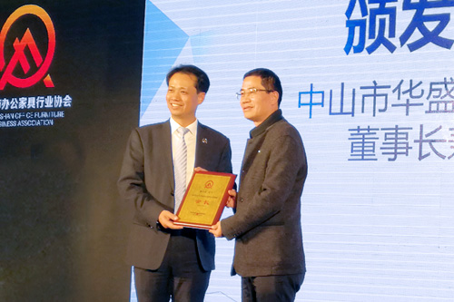 就职典礼上,广东省家具协会会长王克为中山市华盛家具制造有限公司董事长兼总裁姚永红颁发中山市办公家具行业协会会长证书。姚永红会长在就职致辞中对各界领导、同行、会员等社会各界人士的大力支持表示衷心的感谢,他提出“团结全市办公家具行业力量,借力全国乃至全球资源,助力中山市东升镇‘中国办公家具重镇’建设,扩大区域知名度和行业影响力,让会员企业得以更好更快的发展”的目标。带领全体会员共同将中山办公家具产业的发展推向一个新的更高的高度。
