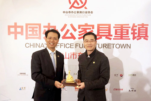 在12月19日召开的全国家具行业工作会议上,中国家具协会授予了中山市东升镇“中国办公家具重镇”称号。据了解,东升镇作为广东省“办公家具专业镇”,自2005年6月被批准为“广东省专业镇技术创新试点”以来,办公家具产业迅猛发展,产业基础得到了不断扩展和巩固,并逐步进入品牌提升阶段,竞争力日益增强,成为东升镇支柱产业之一。截至2017年8月,东升镇聚集了家具制造与销售企业160多家,配套企业40余家,从业人数超过3万人,每年吸引前来洽谈贸易与参观考察的客商超过10万人次。