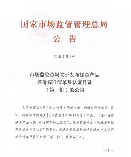 日前,国家认监委官网发布国家市场监管总局第2号公告《关于发布绿色产品评价标准清单及认证目录(第一批)的公告》,其中共涉及12类产品。公告原文如下: