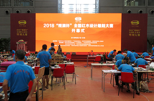 9月21日至24日,由中国木材与木制品流通协会、广东省家具协会、深圳市文体旅游局、深圳市龙华区人民政府主办,龙华区委宣传部(文化体育局)、龙华区民政局(人力资源局)、龙华区总工会、龙华区观澜街道办事处承办,深圳市红木文化艺术协会、深圳市龙华区红木家具行业协会、深圳市龙华区技能工艺人才协会协办的2018“观澜杯”全国红木设计雕刻大赛在深圳会展中心举行。