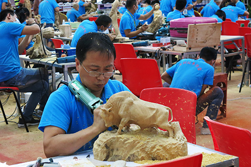 在雕刻大赛现场,参赛选手纷纷“各显神通”,“别具匠心”的艺术创作和“鬼斧神工”的精湛技艺成为红木文化艺术节现场一道亮丽的风景线。 经过3天的激烈角逐,来自浙江嵊州的个人参赛选手陈炉钢凭借红木作品“工匠师傅”成功折桂,获得大赛一等奖;来自龙华区艺美联家私实业有限公司的马福明、蒋萍芳(作品名称“和谐盛世”),以及个人参赛选手陈有义(作品名称“工匠精神”)分获二等奖,胡群青(作品名称“家”)、占水华(作品名称“一呼百应”)、陶明星(作品名称“一带一路”)分获三等奖,另有20名选手凭借精湛技艺荣获赛事“优秀奖”。