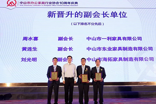 12月21日,中山市办公家具行业协会举办了以“融合奋进、驭势提升”为主题的10周年庆典活动。中山市委常委、统战部部长梁丽娴,广东省家具协会会长王克,中国家具协会副秘书长屠祺,中山市东升镇党委书记王立群、镇长黄少平,广东省家具协会副会长兼秘书长张承志,中山市办公家具行业协会会长姚永红等出席了庆典活动。
