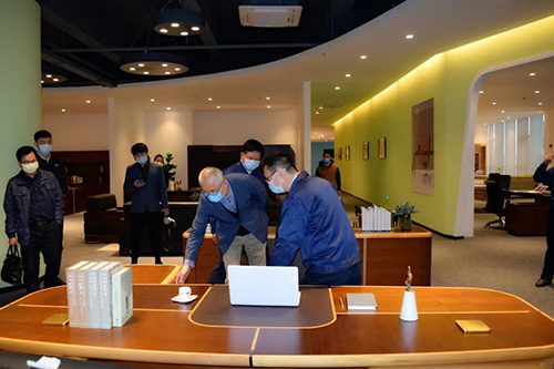 参观科技园:环保家具 智造工厂 随后在江学院董事长的陪同下,冯司长一行参观了长江家具智能化展示厅和长江家具智能生产车间,对展厅内的环保办公家具及车间中引进的智能制造设备给予了极高的评价。