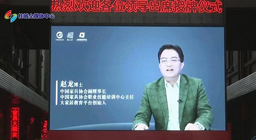 中国家具协会副理事长、协会职业技能中心主任赵龙在现场视频连线介绍了培训基地的功能和培训意义。赵龙指出,要建好基地,按照评价工作流程,加强合作院校制度建设,办好培训,严格审查,严谨颁证,引导家具行业劳动者走上技能成才之路,把家具职业能力评价在规范中做大,在影响中做强,在提质中做优,在权威中做响。广东省家具协会执行会长李礼在现场致辞时,对南海红木产业转型升级寄予信心。